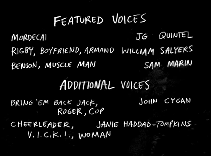 Benson gets angry at Jack and calls the police on him, but he escapes. Benson is still irritated at Mordecai and Rigby for damaging his car, and tells them that they're paying for the damages to the house, his damaged car, and his bus fare for the next month. Mordecai and Rigby start cleaning up the mess despite Benson not say "clean up this mess", and find a completely intact windshield. Muscle Man walks by, telling them that the repair man he recommended was good.