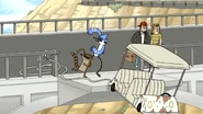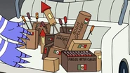 - Goof: Although one of Cart's dying wishes was to go off a cliff with fireworks from a third-world country, (Which Mordecai and Rigby supposedly went and got) it appeared he already had fireworks in his back compartment before they left. This was only shown for a very brief moment.