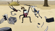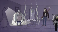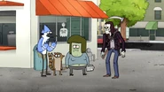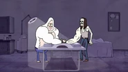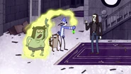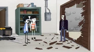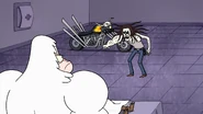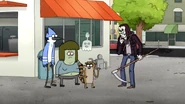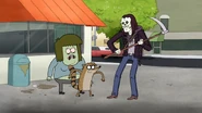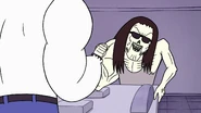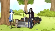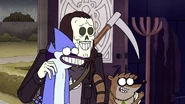 Death's first appearance was in Over The Top, where Skips had accidentally killed Rigby. He appeared to take Rigby's soul before Skips made a deal to bring him back. After cheating Death, he comes forth with his end of the deal and brings Rigby back alive. Before leaving he tells Skips that someday he will have his immortal soul.