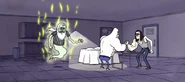 - A running gag is him being able to foreshadow upcoming episodes, as seen in "Dead at Eight" and "Guitar of Rock".