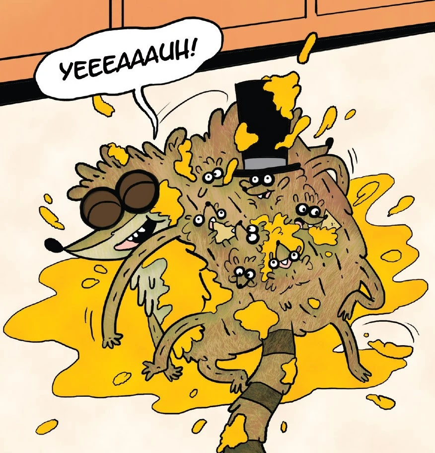 Rigby gets so dirty that his bacteria mutates into a sentient lifeform.