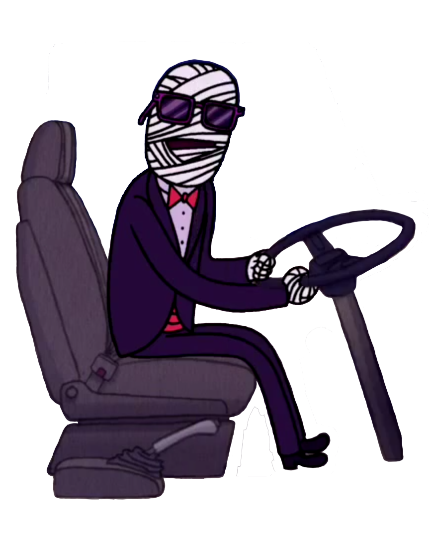 The Party Bus Driver appeared in "Terror Tales of the Park II" as the main antagonist of the short, "Party Bus". After being threatened by Mordecai to stop the bus, his bandages fly off, revealing him to be a skeleton and he makes the bus go faster, causing the gang to age quicker. He was pulled out of the driver's seat by Mordecai causing him to fly backwards and break into pieces. After Mordecai, Rigby, Margaret, and Eileen escape the bus, he and the bus disintegrate and the story ends.