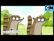Doug continues to be overly appreciative of the accommodation, and Mordecai begins to take a liking to him. His Rigby impression is dead-on. Mordecai and Doug take on Muscle Man and Hi Five Ghost in two-on-two basketball, have fun working The Snack Bar, and do park chores, all while Doug more and more is resembling Rigby, with his hair, lack of clothes, tail, and eyes. Benson even calls Doug "Rigby" when congratulating the two on good work.