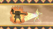 The VCR-bitrator is apparently very powerful. Its primary form of attacking is launching red energy blasts from the remote on its arm. It is also very strong, using its metal arms to beat down the Guardians of Obsolete Formats very easily. It is also very durable as it wasn't even scratched by the Guardians attacks. It can also launch itself in the air by propelling large amounts of air from its back.