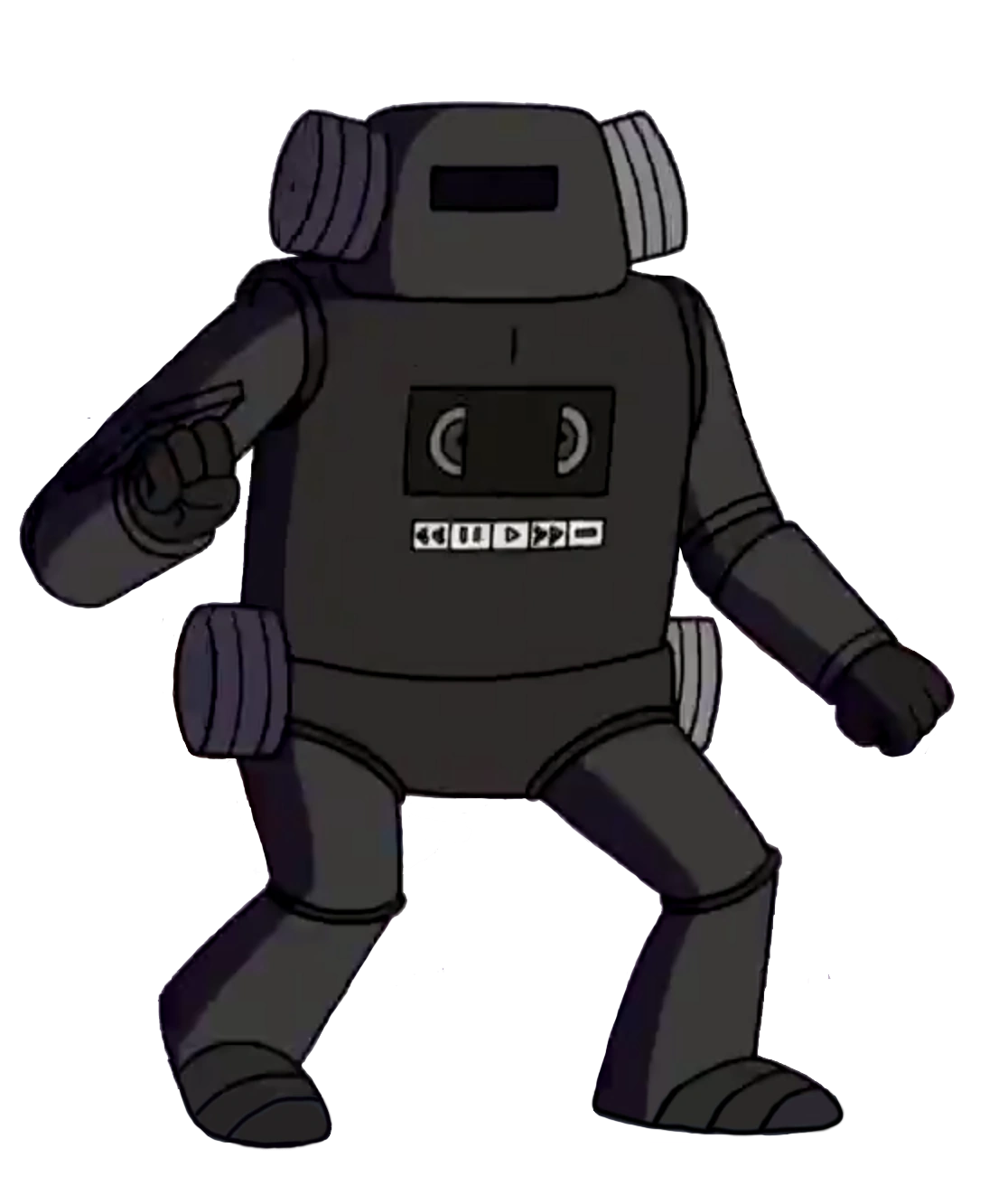The VCR-bitrator, also referred to as the VHS Guardian, is a minor character and one of the main antagonists in The Last Laserdisc Player. It is summoned by the Ancient Order of the VHS after the Guardians of Obsolete Formats gain the upper hand over the Order. The VC-Arbitrator easily starts taking out the Guardians (even destroying 8-Track) until the Librarian transforms into the Laserdisc Guardian. The VC-Arbitrator is then destroyed by the Laserdisc Guardian.