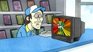 - If you look closely on the right in "That's My Television" when Mordecai and Rigby won, you can see him there. He was later killed along with the RGB2 fans.