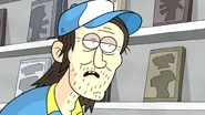 - His appearance in the shop is a worker with some stubble and long black hair. His appearance inside Mordecai's Memories is a worker with a clean face and short hair.